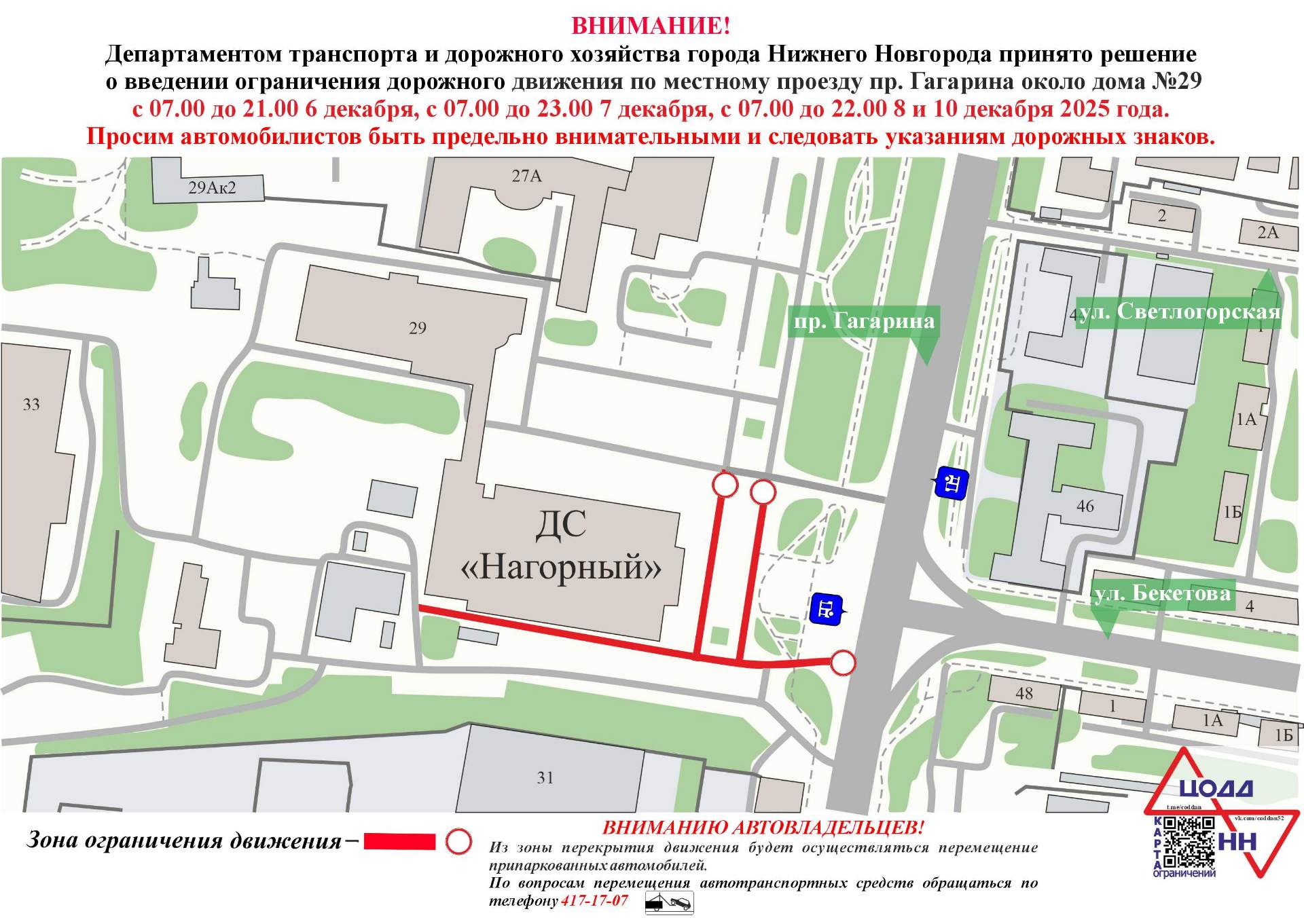 Движения транспорта временно ограничат по местному проезду проспекта Гагарина в Нижнем