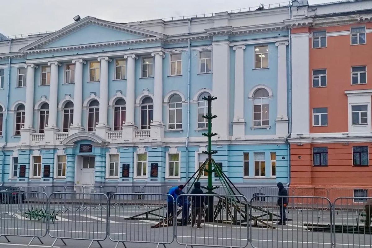 Рабочие начали монтировать главную новогоднюю елку на площади Минина и Пожарского в Нижнем