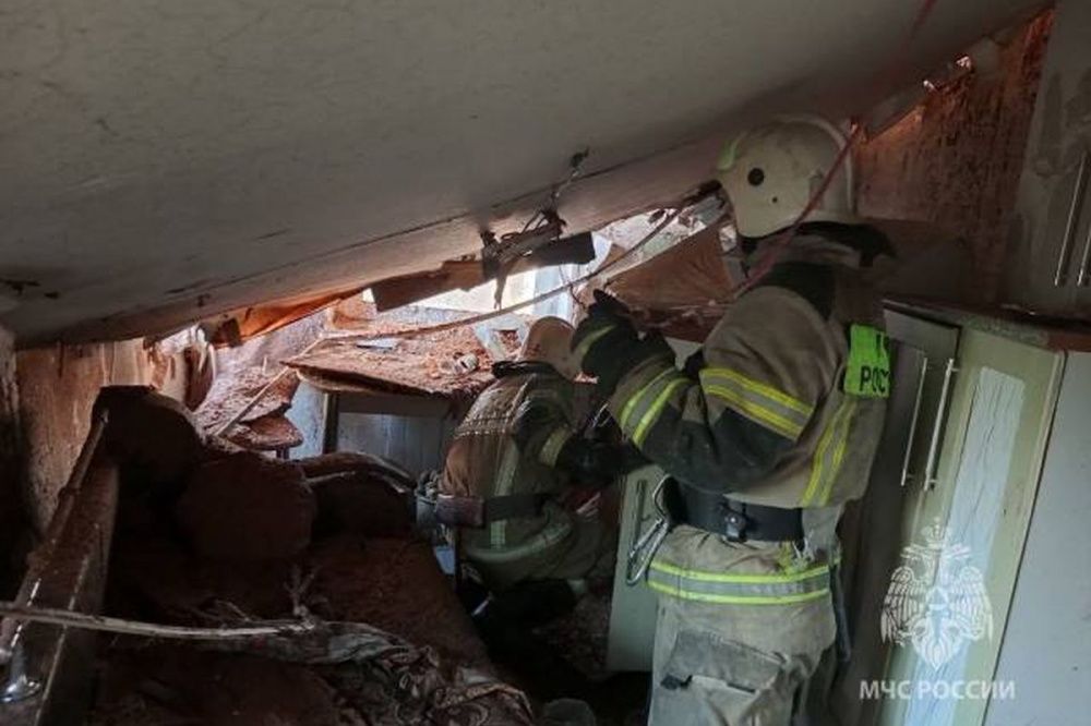 При взрыве обрушилась стена на площади 20 квадратных метров.
