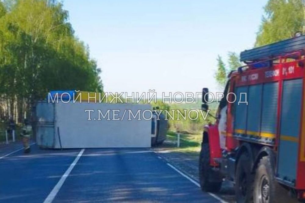 Грузовик перевернулся перед поворотом на Вачу 12 мая