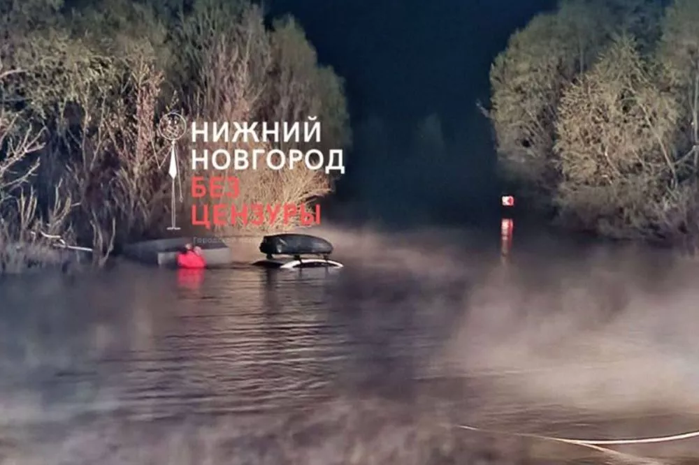 Иномарка утонула на дороге Павлово – Тумботино в Нижегородской области
