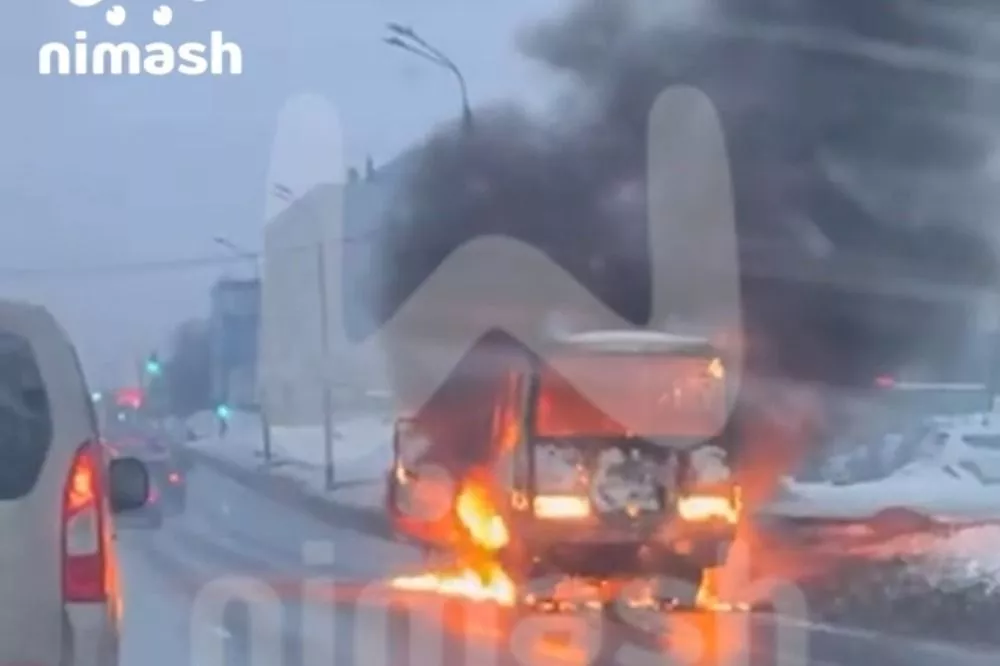 Автобус горит у ТЦ «Открытый материк» в Нижнем Новгороде