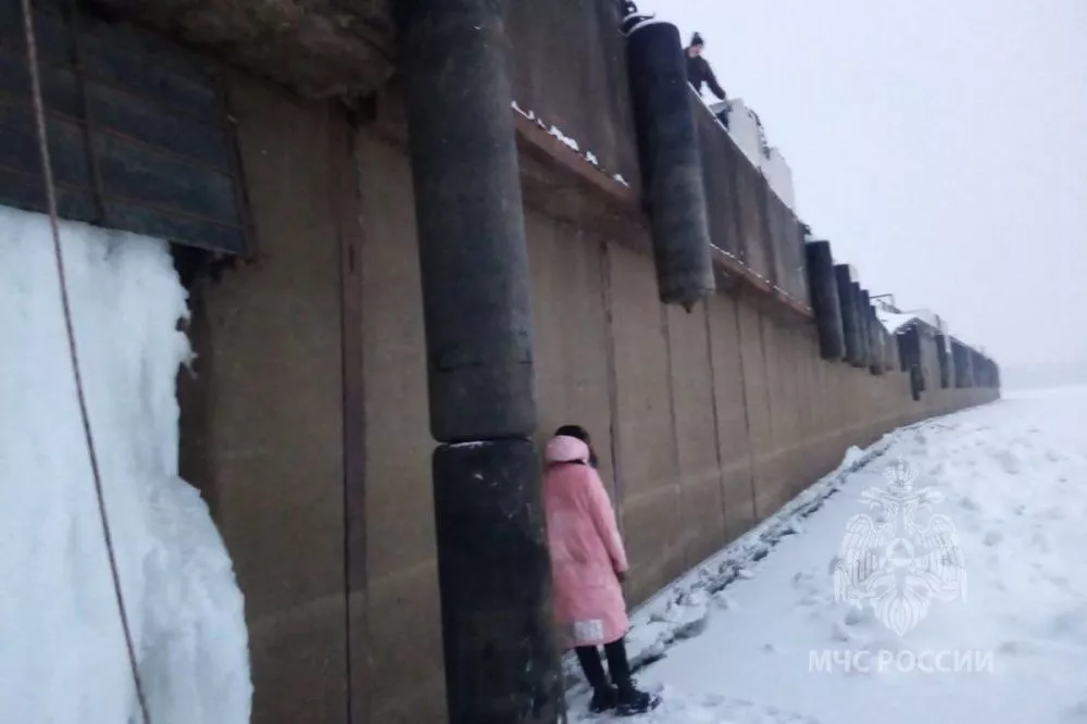 Спасатели подняли ее со льда реки с помощью альпинистского снаряжения