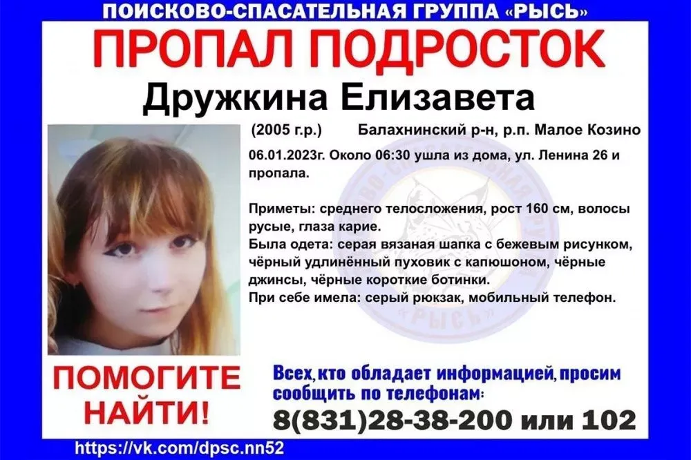 17-летняя девушка пропала в Балахнинском районе 6 января