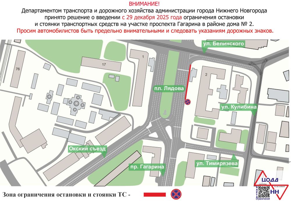 Парковку машин ограничат с 29 декабря на площади Лядова