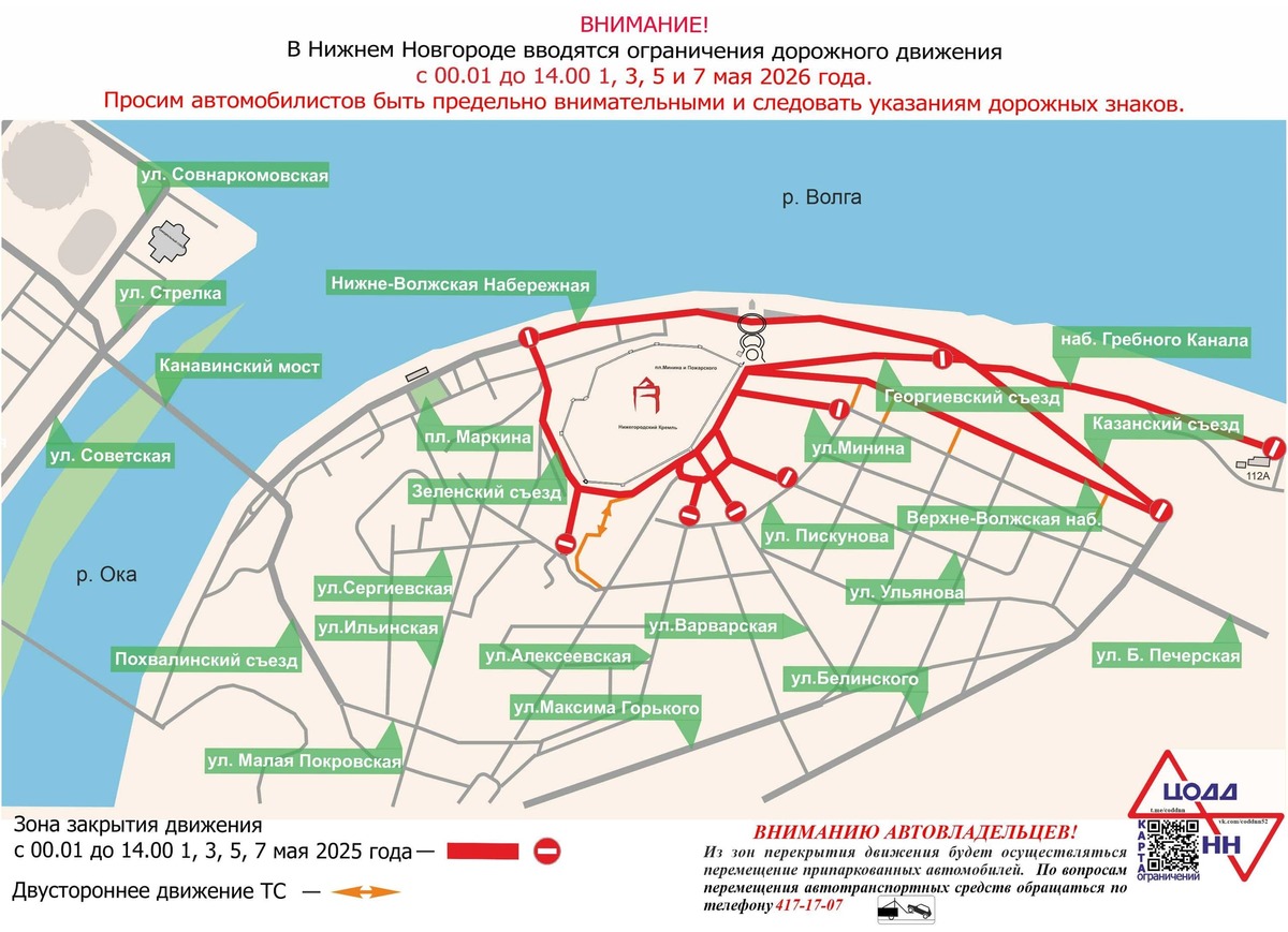 Движение транспорта в центре Нижнего Новгорода ограничат в апреле и начале мая