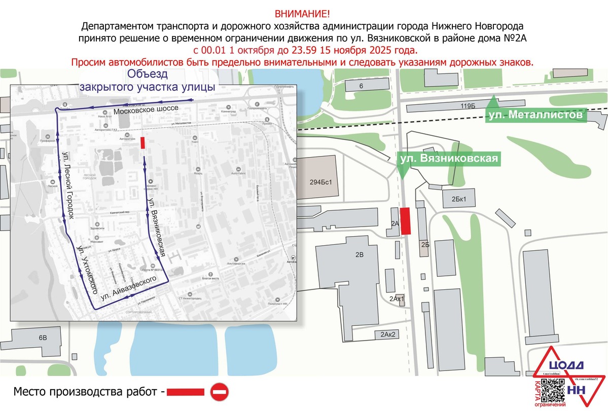 Проезд по участку улицы Вязниковской ограничат 1 октября в Нижнем Новгороде