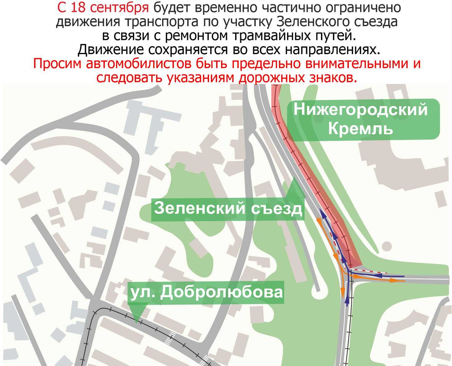 Движение по Зеленскому съезду ограничат с 18 сентября в Нижнем Новгороде