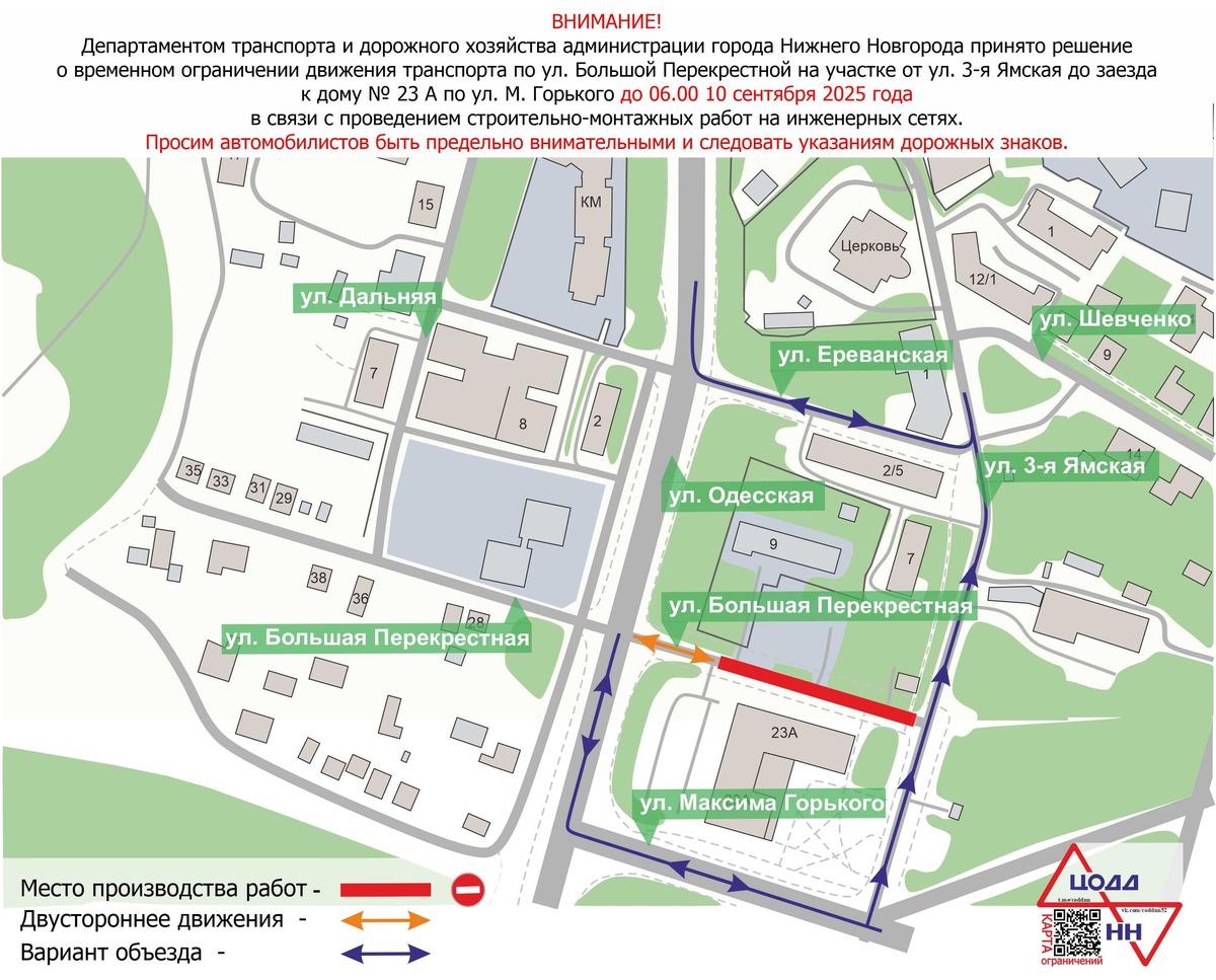 Движение транспорта по улице Большой Перекрестной ограничили в Нижнем Новгороде