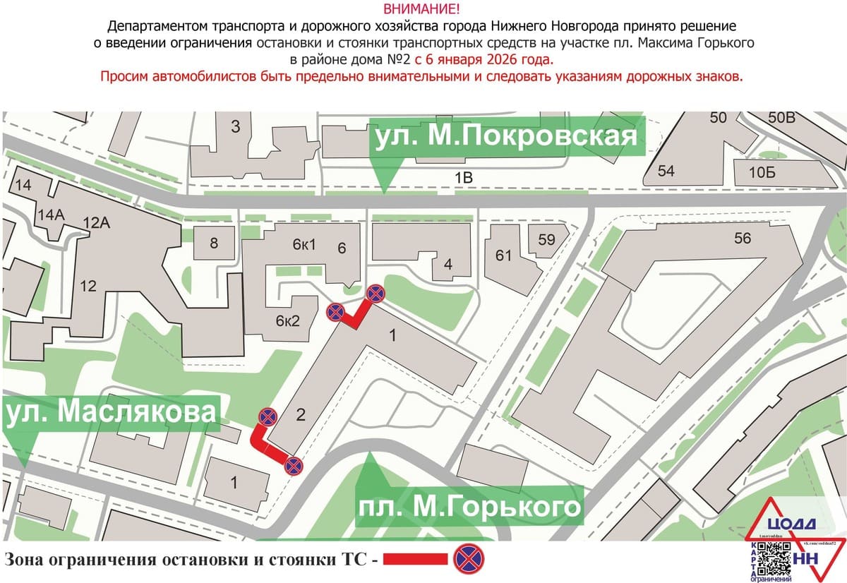 Парковку транспорта ограничат на площади Горького с 6 января 2026 года