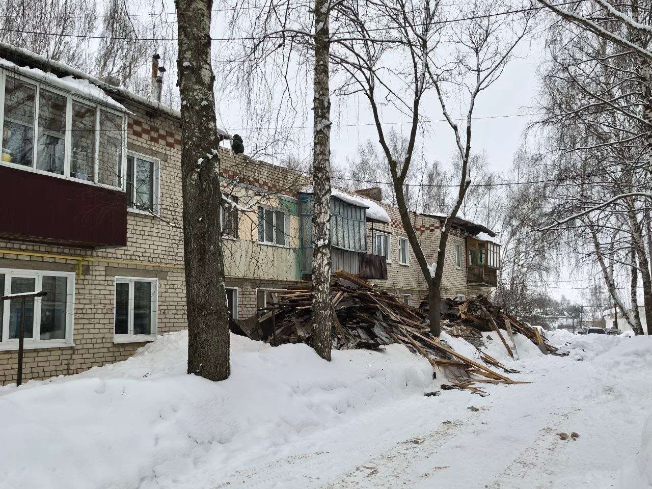 Крыша многоквартирного дома обрушилась из-за снега в Княгинине