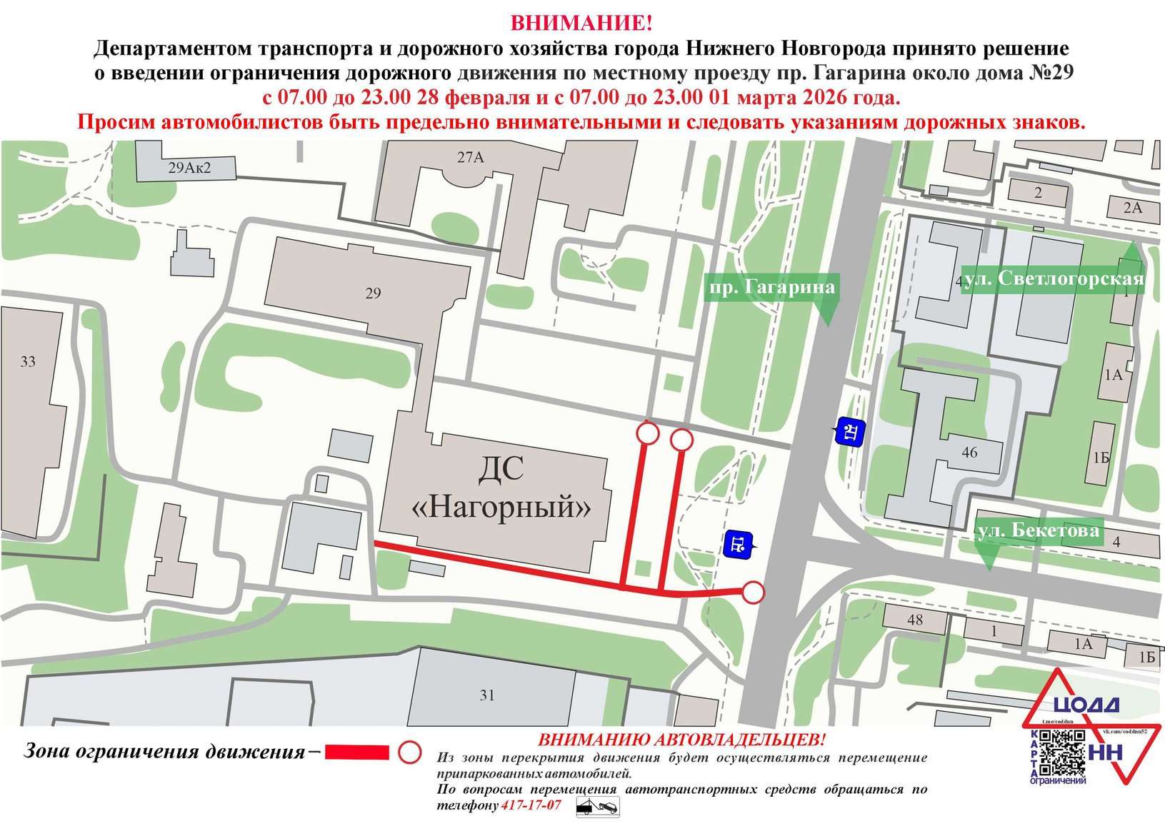 Местный проезд у Дворца спорта «Нагорный» закроют на два дня в Нижнем Новгороде
