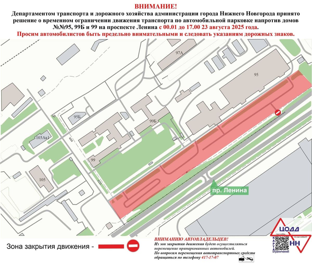 Движение транспорта ограничат по проспекту Ленина в Нижнем Новгороде 23 августа