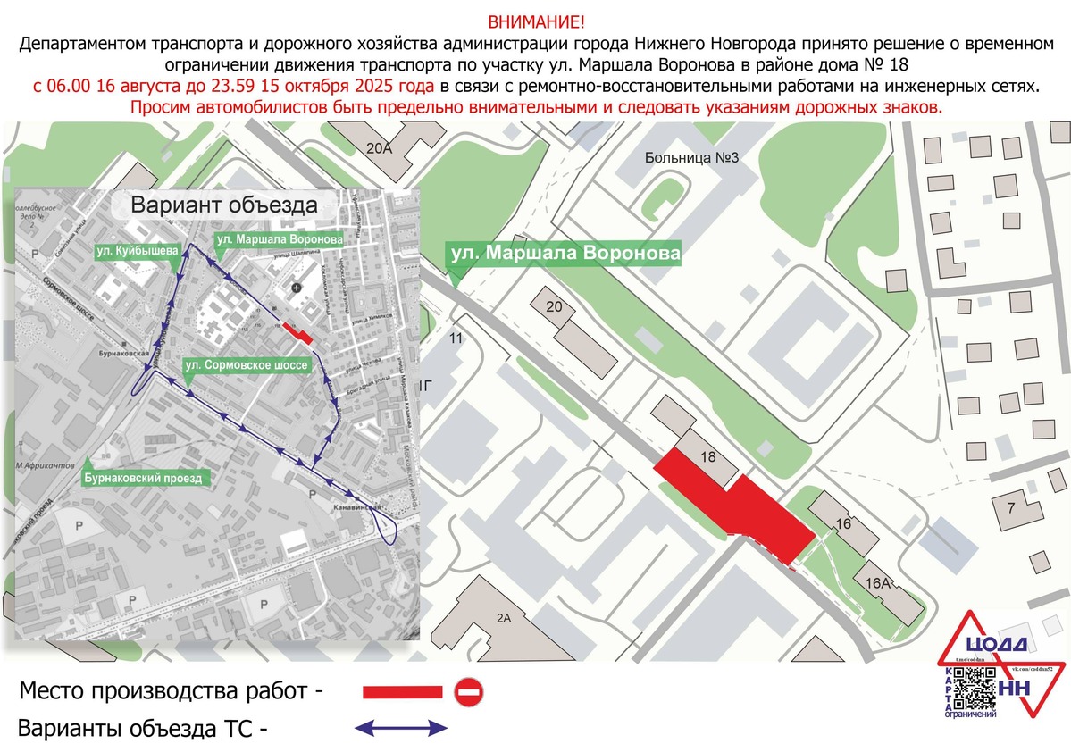 Проезд по улице Маршала Воронова ограничат до 15 октября в Нижнем Новгороде