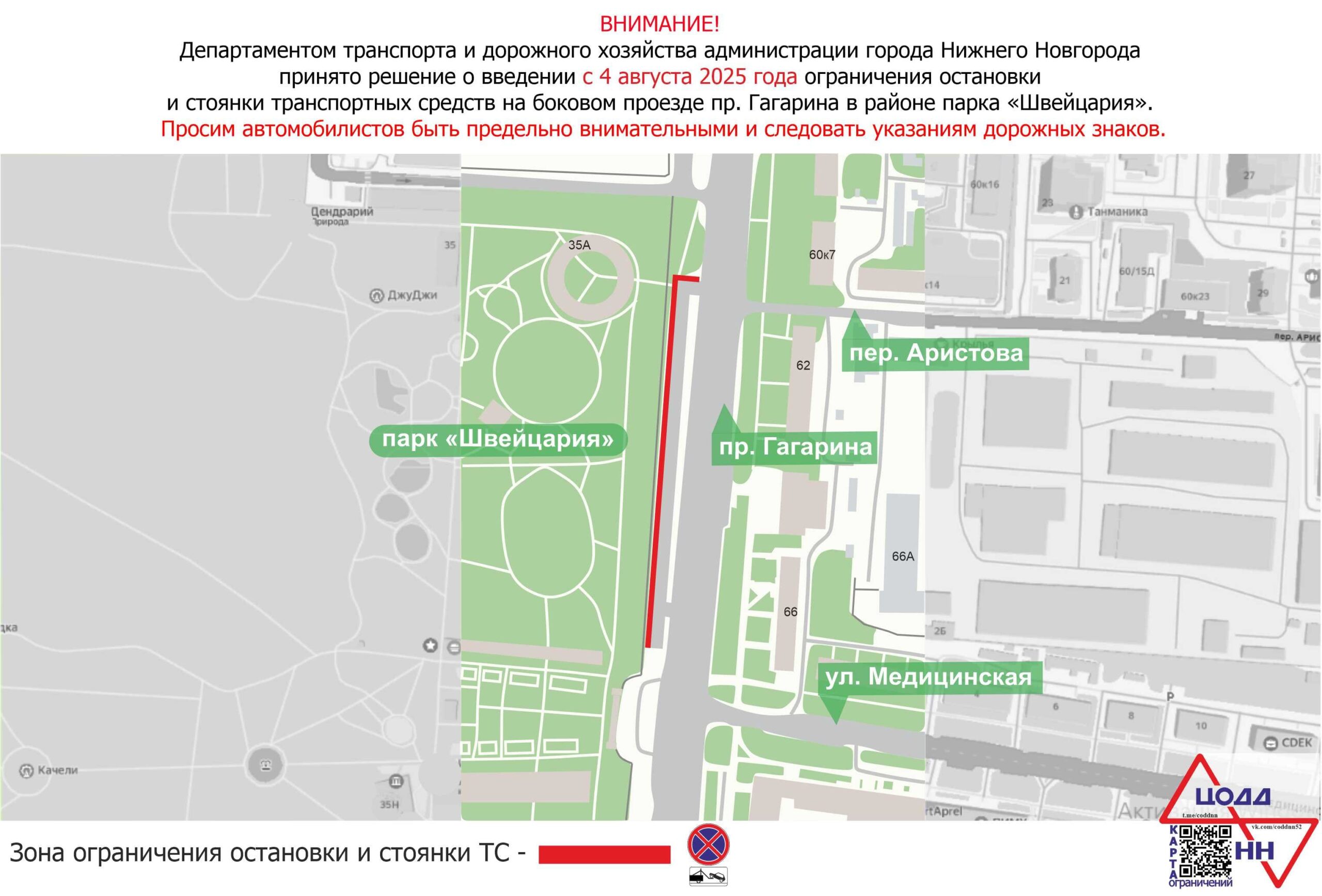 Парковку машин у парка Швейцарии ограничат в Нижнем Новгороде с 4 сентября