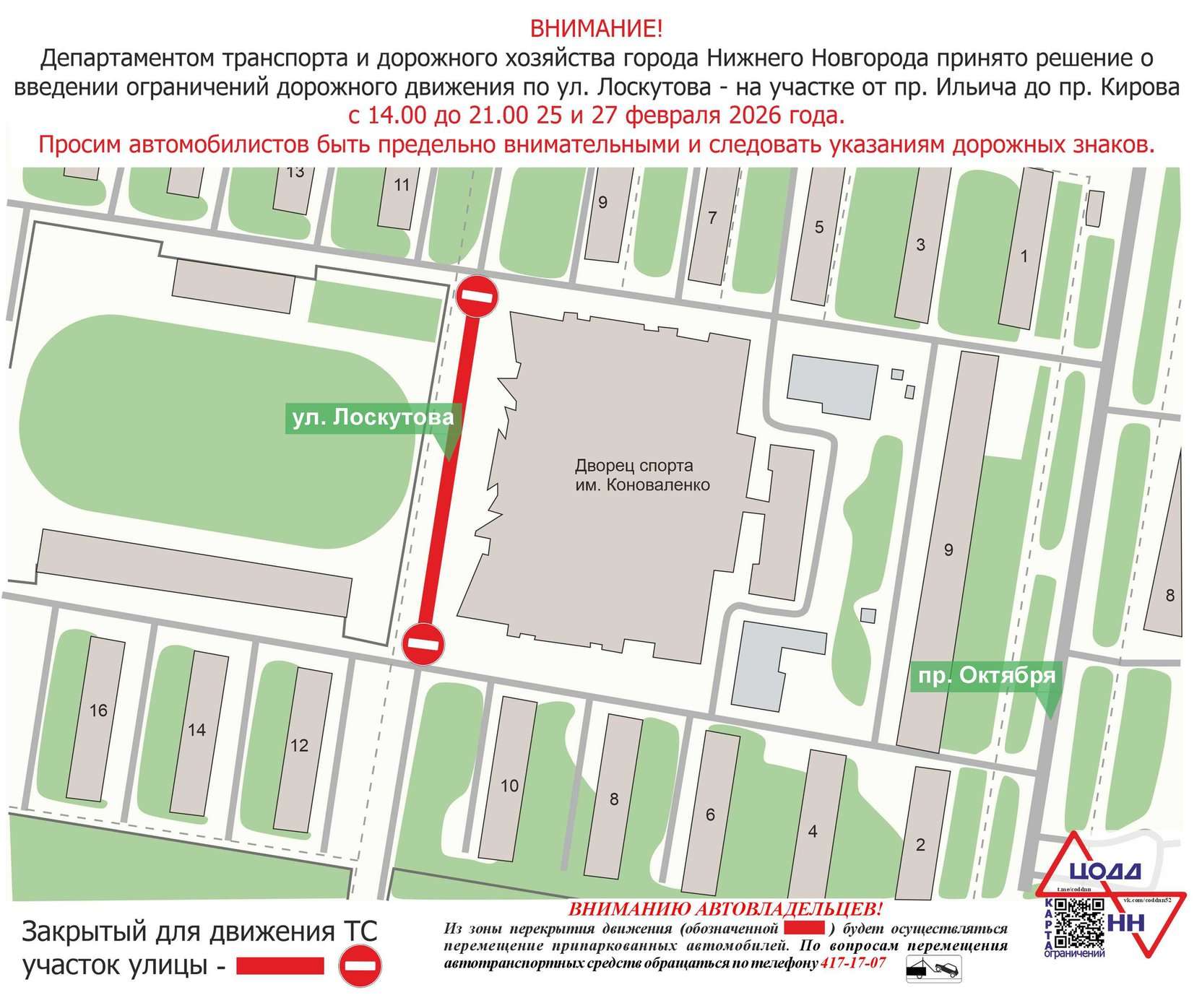 Движение транспорта по улице Лоскутова ограничат из-за хоккея в Нижнем Новгороде