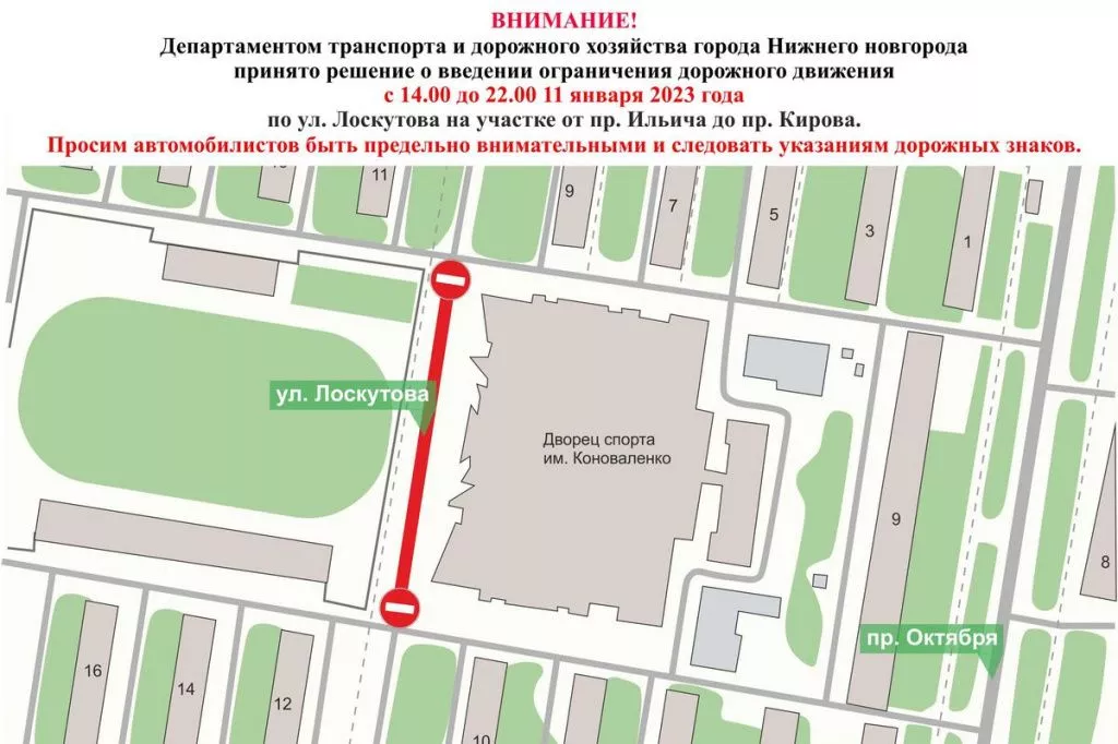 Движение машин временно ограничат на улице Лоскутова в Нижнем Новгороде 11 января 2023 года. Об этом сообщили в городском департаменте транспорта.