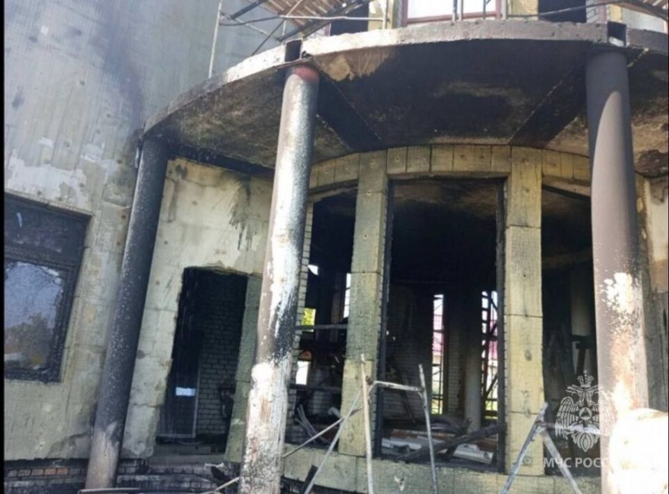В результате обгорели строительные леса у здания и его кровля. Пожарные пока продолжают тушить огонь. Позже дознаватели выяснят причины возгорания.