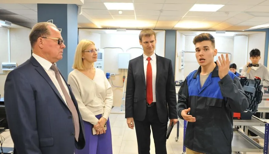 Руководители посетили лабораторию со станками с ЧПУ, на которых учащиеся знакомятся с обработкой материалов резанием, изготовлением деталей фрезерованием и точением. Здесь студенты учатся программировать станки, которые изготавливают детали с микронной точностью.