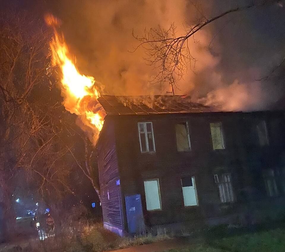 Пожар случился в частично расселенном доме. Предварительная площадь возгорания – 360 «квадратов». По данным на 00:09 27 ноября пожар удалось локализовать.