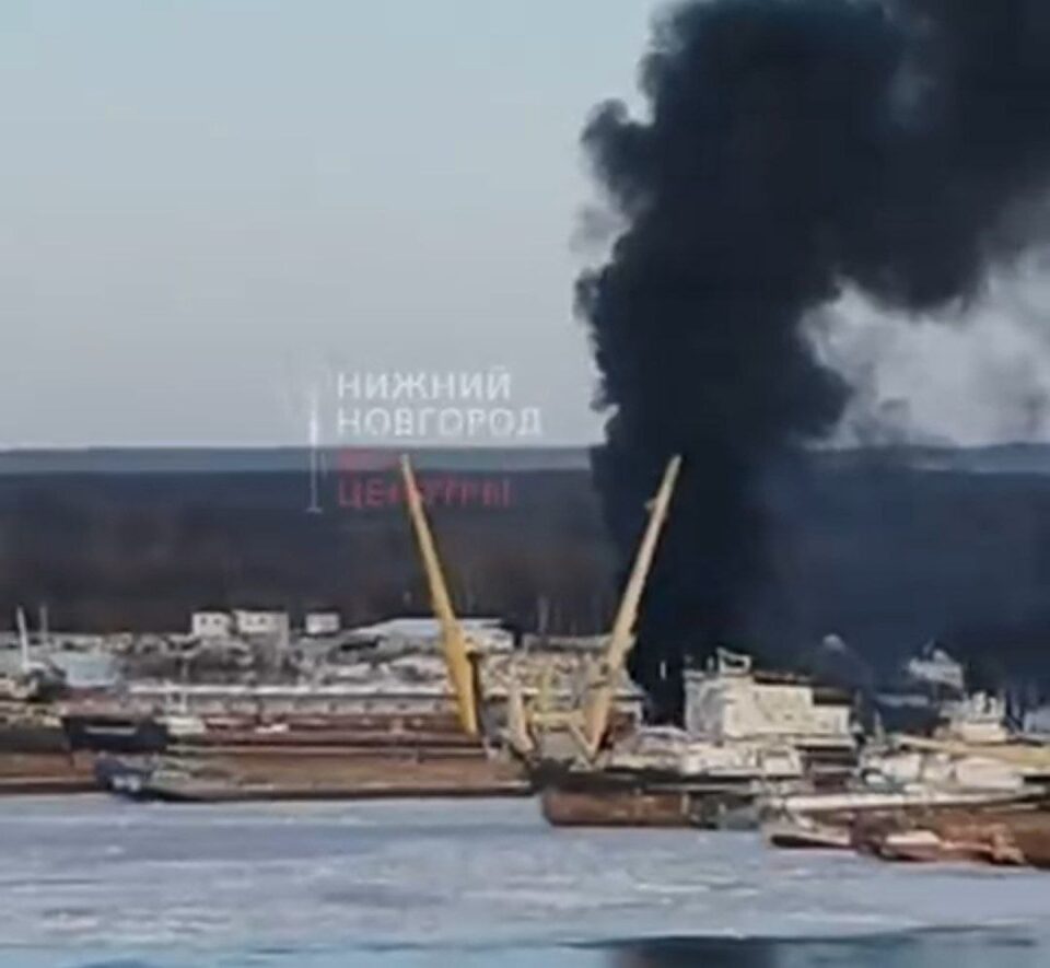 23 декабря в городе Бор Нижегородской области загорелась баржа. Об этом сообщили пользователи соцсетей.
