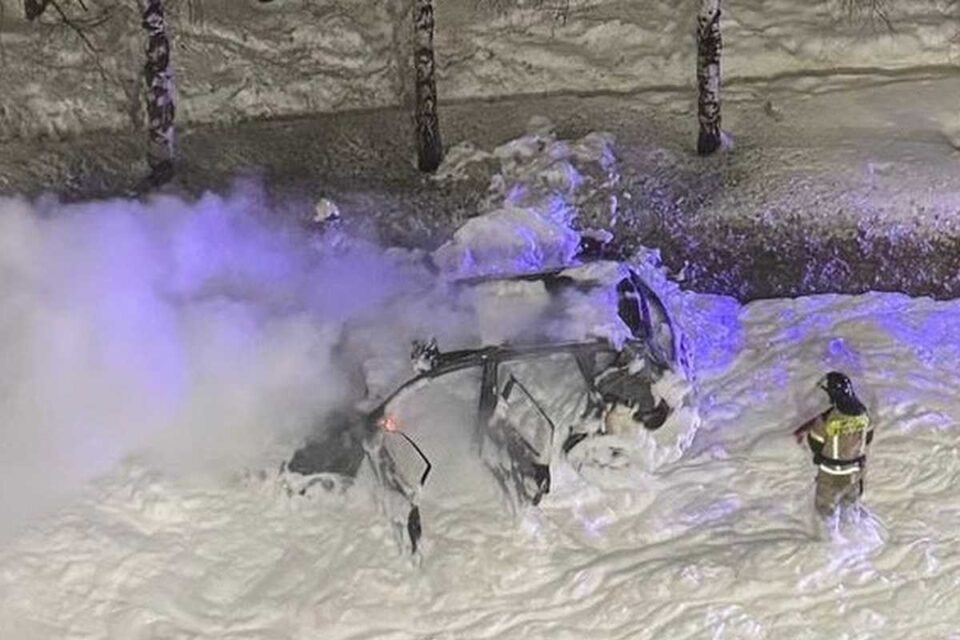 По словам местных жителей, первый хлопок раздался в 5:40, за ним последовали еще два. Уже через девять минут машину Livan X6 Pro охватил огонь.