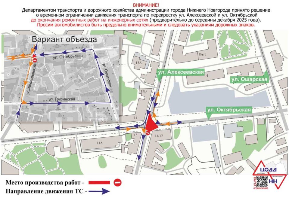 В Нижнем Новгороде ограничили движение транспорта по перекрестку улиц Алексеевской и Ошарской. Об этом предупредили в городской администрации.